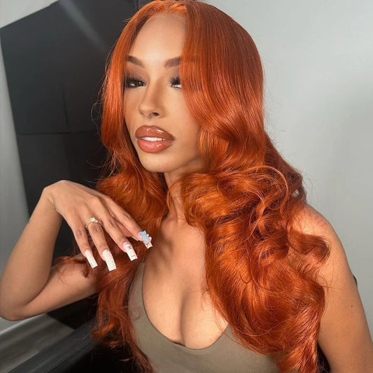 Ginger Orange 13x4 Body Wave 200 Density Short Bob Frontal Wig Brazilian Virgin Hair HD Transparent Lace wig Pre plucked Wigs