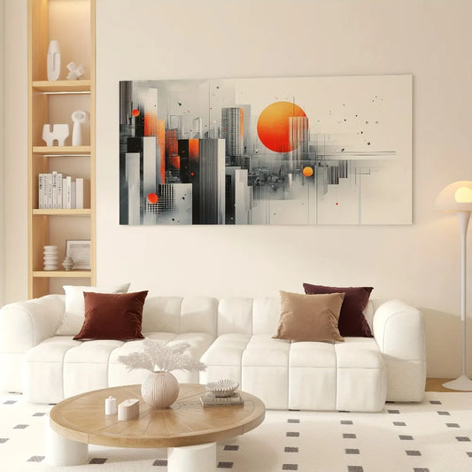【 Elegant 】 Modern abstract canvas art, pine frame - geometric urban landscape design, 1.5 inches thick, interior decoration